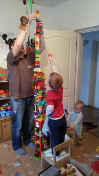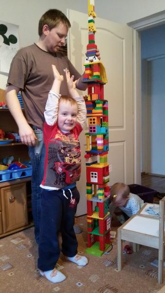 Miluju lego od svého dětství, měli jsme nemocnici a pořád jsme si s ní hráli, s tatínkem. U nás tatínek na stavění moc není, ale já to miluju, ikdyž ne vždy se zadaří podle plánu..ale holkám je to jedno...proč říkat, že je to Eiffelova věž, když jim úplně stačí, že je to vysoká věž 😀....naše parodie na pyramidu, vánoční stomeček, Eiffelovku a Ještěd 😀 a ačkoli je Baruš jen 14 měsíců už krásně sestaví několik kostiček na sebe, je šikulka 🙂