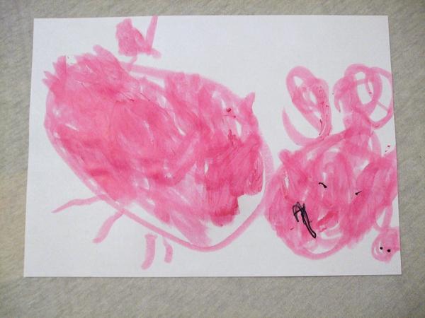 Naše dcerka má dva a půl roku a jelikož je to něžná holčička, tak má ráda i něžná a milá zvířátka jako například prasata. Denně chodíme do chlívku kontrolovat prasátko a nosíme mu dobroty, v posteli s námi musí ležet metrové prase od nejmenované značky nápoje, na videu sledujeme pohádky o prasátku Peppině. Když tatínek chrápe, tak Eviččina nejoblíbenější průpovídka je: "tatínek chrápe jako prase". Na oběd má nejradši vepřový řízek (naštěstí ještě nechápe, že je to to prase co jsme navštěvovali v chlívku). Tak vám zasíláme jak jinak než obrázek prasete. Evička kreslila prase úplně sama, já ji pouze radila kam patří která část těla 😀