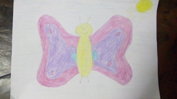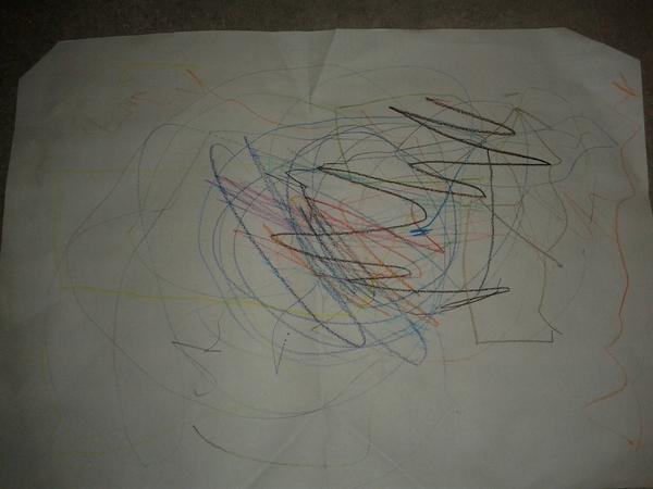 vlevo nahore: ryba (kreslil ji ze záhadného duvodu na vysku) - 2,5 let