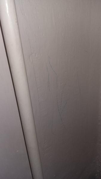 Tak u nas jsou nejoblibenejsi mysky, podle mickey mouse a tento vytvor se nasemu dvouletemu filipkovi podaril za moment, co si mamka od malovani odskocila na zachod. Nadsene volal mys a ja videla jen modrou pastelku po zdech v cele kuchyni 😀 jde to spatne videt, ale snazila jsem se, aby fotak tu svetle nodrou aspon trochu zabral, tak jsem vyfotila jeden detail z tech pomalovanych zdi 🙂
