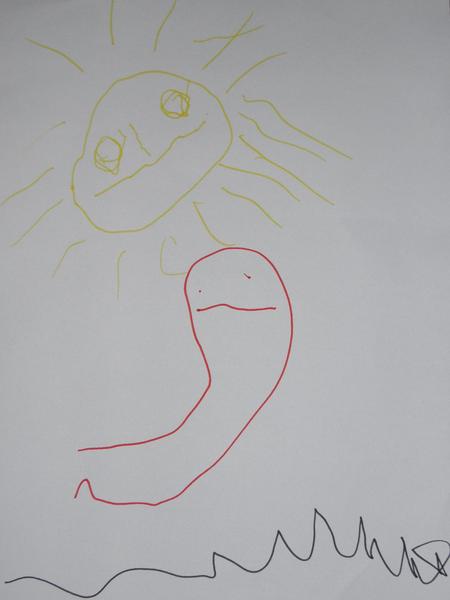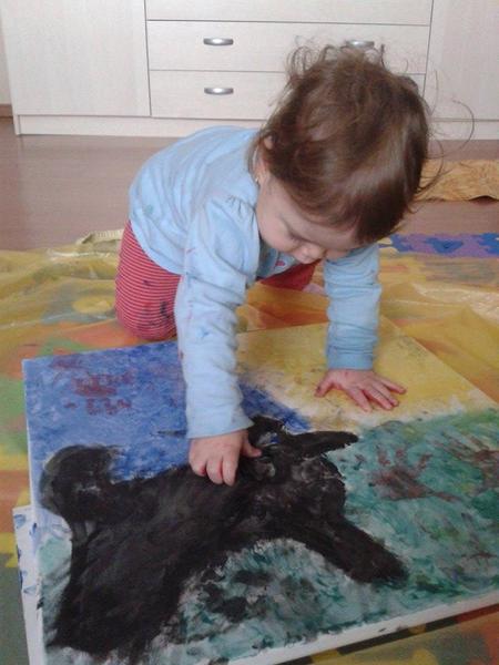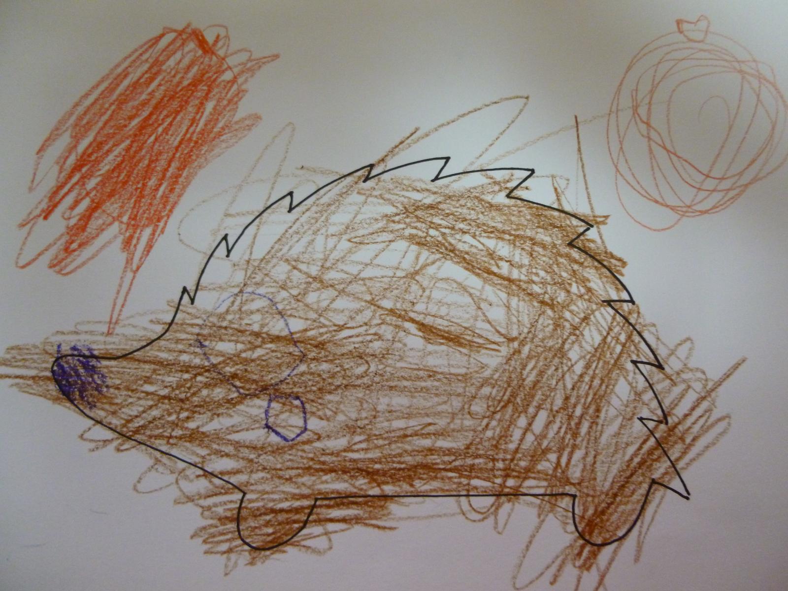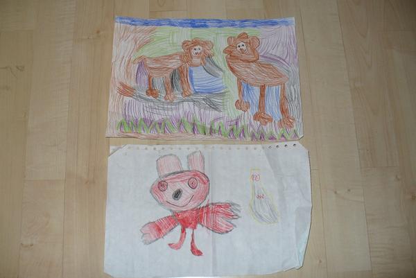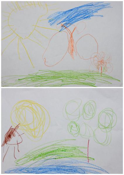 Míša zatím mezi zvířátky favorita nemá, má rád vše, co je živé 🙂 zatím moc nemaluje, je spíš na jiné aktivity, ale obrázek č.1 je podle něj velryba v moři. dřív tvrdil, že chobotnice...no každý ať si v tom asi něco najde 😀 jinak jak ho tak pozoruji, tak jeho nejoblíbenějším zvířátkem je asi jeho malá sestřička. rádi si spolu hrají na pejsky nebo koníky...takto ji nedávno namaloval, tak pokud se to počítá, tak připojuji obrázek č.2 😀