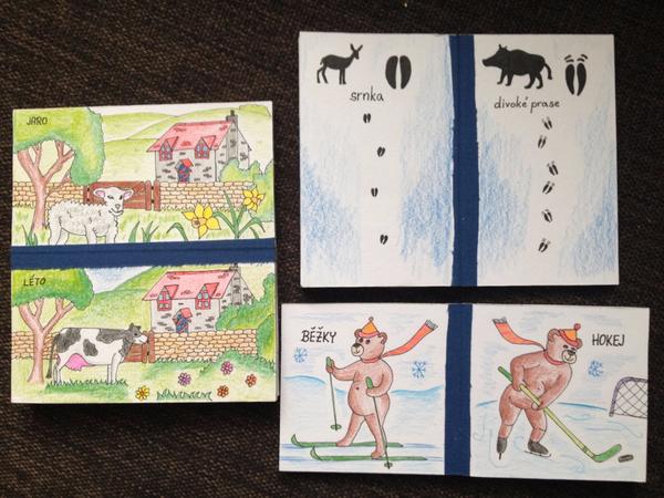 Já právě vytvářím synovi (17 měsíců) adventní kalendář z 24 leporel. Každá knížka má 6 stran s nějakým zimním motivem a je v ní minimálně jedno zvířátko. Usilovně mákám každý večer tak snad to do 1.12. stihnu 😉 Posílám ukázku z knih Zimní sporty, Na procházce v lese a Čtyři roční období. Až to dodělám, nafotím na MK celé 😉