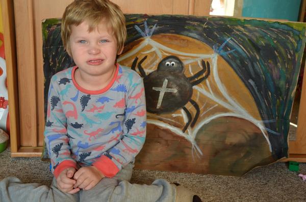 bývame v meste a tu les ako klasický veľký les nie je, tak chodíme aspoň do lesoparku. Ale v lete sme boli u babičky a dědy, ktorí bývajú na vesnici a všade okolo je les, tak sme tam chodili každý deň a zbierali huby (tie veľmi nerástli), maliny, ostružiny a lesné jahody. Deti si to neskutočne užívali. Tam si okrem domácich zvierat obľúbili sovy, ktoré sa každý večer ozývaly z lesa. Tu je obrázok sovy v podaní mojej dcéry (2 roky a 7 mesiascov). Pri kreslení očí a zobáku som dcérke viedla ruku.