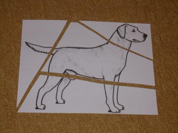Nejoblíbenějším zvířátkem našeho prcka je pejsek. Jelikož je ale náš prcek ještě malý a neumí kreslit, tak jsem s ním chtěla obrázek aspoň vybarvit. Bohužel ho více než kreslení zajímalo rozhazování pastelek . Obrázek jsem tedy rozstříhala a aspoň jsme se ho snažili spolu složit (hlavička, tělíčko, nožičky a ocásek) 🙂