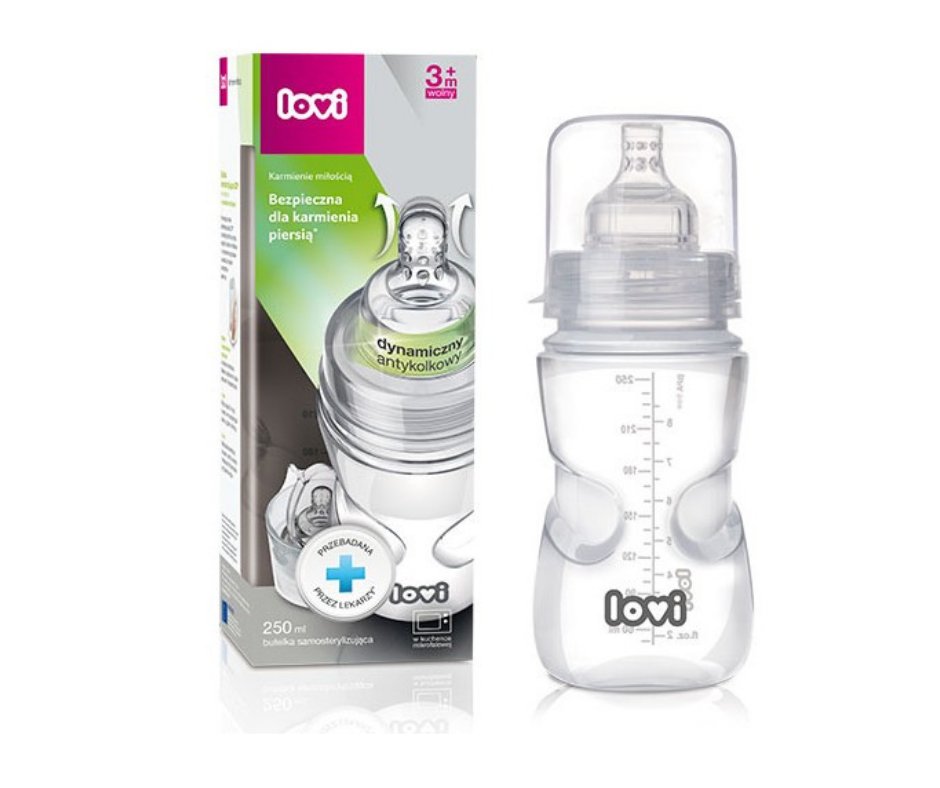 🍼 Samosterilizující láhev LOVI má speciálně konstruované víčko, které umožní bezpečně a rychle sterilizovat láhev včetně všech jejích částí. Do víčka pouze nalejete asi 30 ml převařené studené vody, přidáte zde všechny další části (těsnící disk, šroubovací víčko, savičku), položíte na víčko láhev (tedy dnem vzhůru) a vložíte do mikrovlnné trouby (na maximální výkon). Čas sterilizace se odvíjí od výkonu vaší mikrovlnné trouby (u lahvičky najdete konkrétní informace dle výkonu). Víčko i láhev obsahují otvory pro odvod vodní páry při sterilizaci.