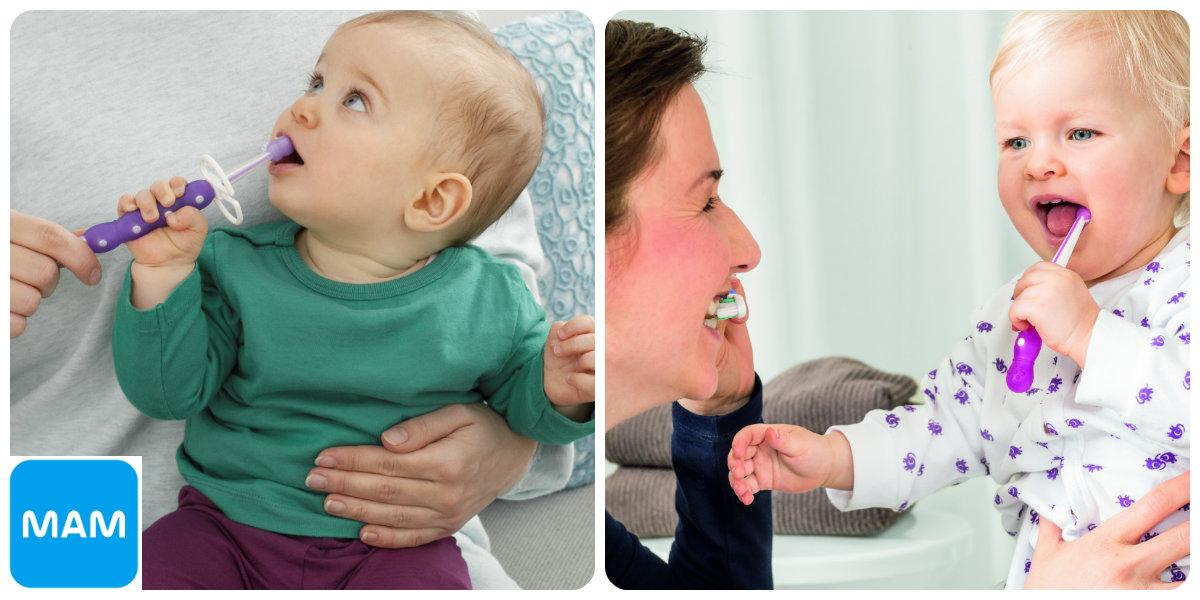 od téma kousátek se přesuneme k zubním kartáčkům 🙂 MAM nabízí rodičům propracovaný sytém, díky kterému se dítě postupně učí samostatnému čištění zubů. Od zubní žínky Oral Care Rabit přes masážní kartáček, o kterých si dnes ještě řekneme, přes kartáček Training Brush, který má prodlouženou rukojeť a rodič tak může dítě navádět k provádění správných čistících pohybů, až po poslední krok, kartáček First Brush, první kartáček dítěte, který má zaoblenou hlavu jemnou k dětským ústům a dítě tak snadno může napodobovat čištění zubů, které vidí u svých rodičů.