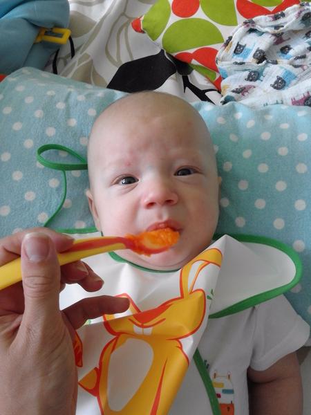Zeleninka je na druhém místě, ovoce je zkrátka ovoce! Nicméně jsem zjistila, že důležitou roli hraje konzistence (příkrm musí být řidší) i lžička - musí se to z ní dobře papat!