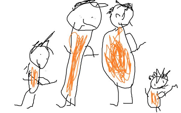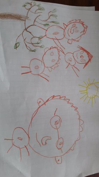 Posilam obrazek naseho Vojty na tema rodina. Jinak ten nejvetsi je tata pak jsem ja Vojta a nejmensi nase Elenka. Je to cesta do lesa🙂