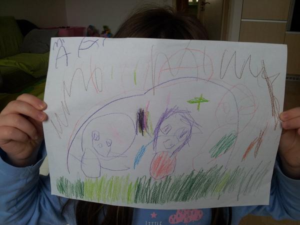 @pajuska252 a ja si ten výtvor povesila nad postel jako jeho prvni kresbu a je mi jedno ze se na tom nic nepozna