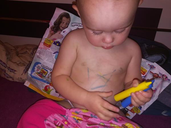 Papír už je mu asi malý a syn zřejmě objevil krásu malování na zeď. Máme se tedy na co těšit 😅!