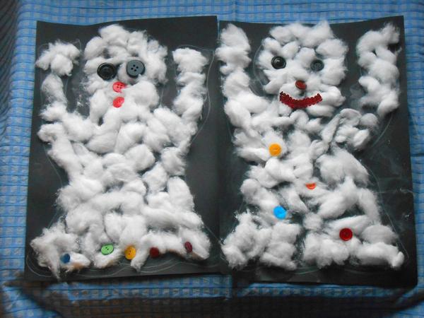 Kluci vyráběli z černého papíru, na který lepili natrhanou vatu a dozdobili knoflíčky.