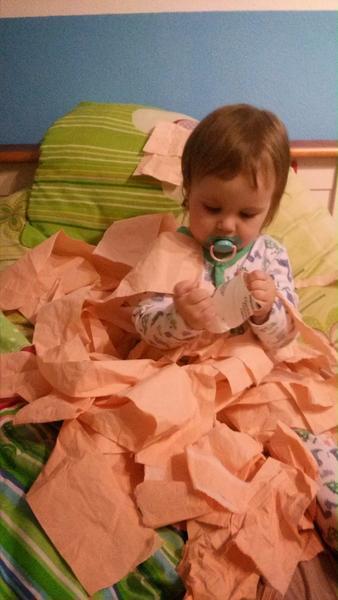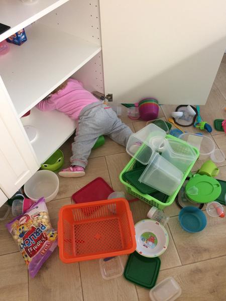 Asi před rokem si vylezla na linku a vysypala celou krabici umělého mléka - bylo to všude. A z posledního týdne - v neděli po cestě do restaurace na oběd někde objevila čerstvé psí hovínko, víc netřeba dodávat... A včera když jsem kojila mladšího, tak mi do záchodu vymotala skoro celou roli papíru a spláchla. S ní se rozhodně nenudím 🙂