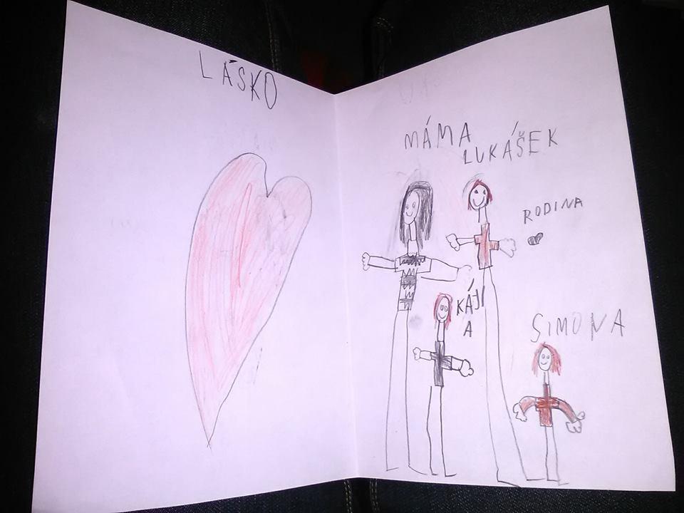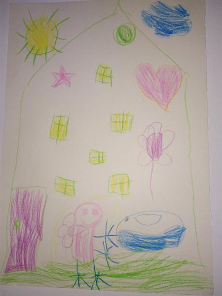 Nakreslila rovnou celý dům. A já povídám "ale my nemáme dům, bydlíme v bytě". A ona odvětila