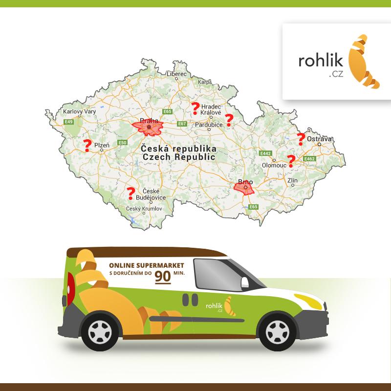 Rohlík aktuálně jezdí v Praze, v Brně a také v okolí těchto měst.