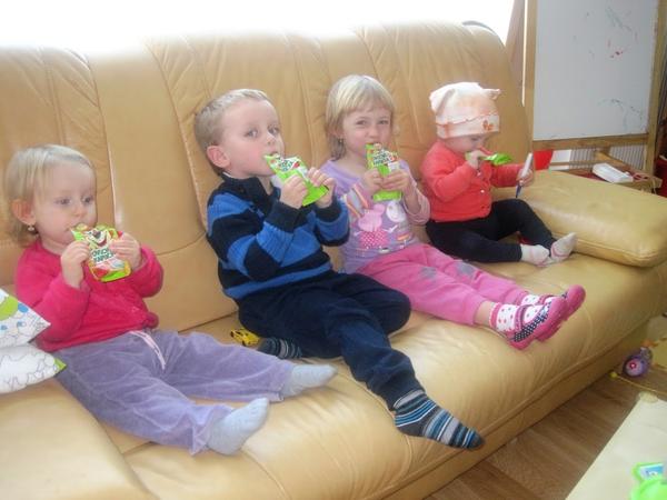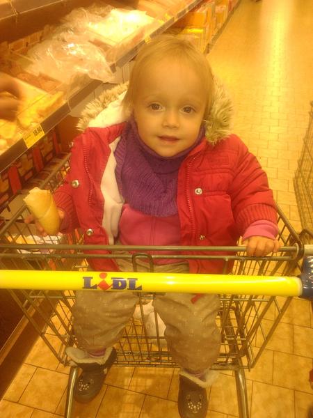 My nesmíme na žádný nákup zapomenout vzít z domova láhev s pitím, v obchodě pak Míša nejčastěji vyškemrá chlazený mléčný řez - jakoukoli značku. Je to její nejoblíbenější svačinka. Také miluje jogurtíky (pribináček, lipánek i čokoládové termixy) ale musí je papat sama od maminky se to už nelíbí 😝. Avšak pochutná si i na obyčejném rohlíku. Zde je pár fotek