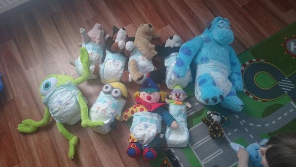 Jak kdy, podle situace. Většinou si hrajeme no a nedávno jsme pečovali o plyšáky 😀