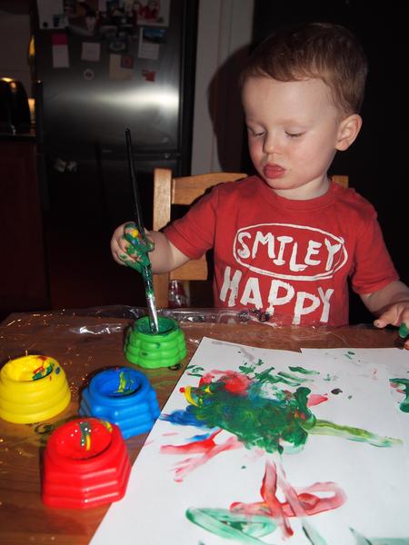 náš Josífek onehdá "nakreslil" nebo spíše napatlal svůj první obrázek. Dílo hodné aukce 😀. Ale určitě si ho zarámujeme, je to jeho první i když lehce depresivní dílko🙂