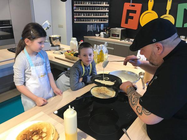 Určitě s dětma, protože je vaření víc a víc zajímá a jsem ráda, když ví, co mají podat, aby byly třeba palačinky. Takže by je to velmi bavilo a hlavně co si uvaří, stačí malé zapojení, to i sní🙂