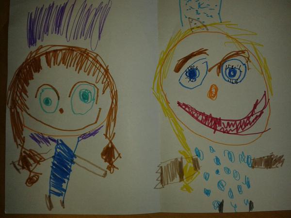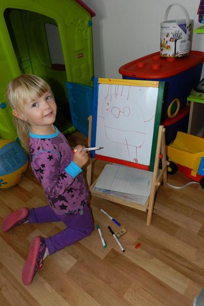 Naše holčička je právě nemocná v horečkách, tak se jí moc malovat nechtělo, ale pak vzala papíry a tak jí říkám, ať mi namaluje něco, na čem by se jí krásně spinkalo, a co by chtěla mít pořád u sebe, prostě co miluje.... slza mi ukápla.... říká ,,miluju maminku, tatínka, ťuníko, a pítěk"..... 🙂 tohle se krásně poslouchá, a nás řekla na první místo 😀