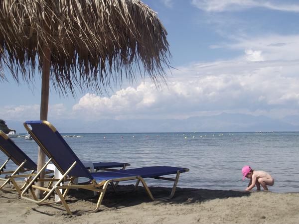 Tak já miluji už mnoho let Řecko a byla jsem tam 22x, takže letos kam jinam než na Korfu, letovisko Sidari, studia Gela. Vůbec mi nevadí, že jsme tam byly s dcerkou loni, protože jsme byly nadšené a super lastík jsem koupila na pondělí. Jsou tam krásný písečný pláže, mělko, takže se není čeho obávat, že dítě utone, plno zábavy s hřištěma, atd. A jen chci navnadit další cestovatelky matky samotný s dítětem. Napřed jsem se obávala (dříve jsem jezdívala také sama někdy) a co mám 4,5letou dcerku, tak jsem se poprvý odvážila s ní jako 2,5 letou na Zakynthos (kratší let, pláž skoro u studií, letiště za rohem). Studia jsou pro nás cenově přijatelnější, protože si uvaříme kdy chceme co chceme (večeři si dáváme v restauracích a kde se nám líbí, samozřejmě 2 krásný holky mají spoustu výhod o🙂) Nemíním dávat za ni třebas 14 tis. v hotelu s all inc., když toho moc nesní a je to omezený časem a ty fronty, prostě je to pro mě lepší jít si do kterýkoliv rest. a vybrat si tradiční řecká jídla, které miluji.