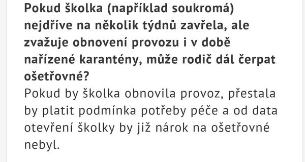 Ahoj,klikněte na stránky MPSV.CZ osetrovne.Popravde to nechápu.Tam jsou obe možnosti.A včera na FB bylo napsáno,že zas nárok nebude(když dítě je zdravé at...a skola bude otevrena).Každou chvilku se píše něco jineho🤔?