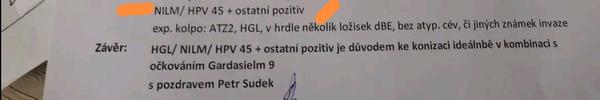 Me HPV vyšlo pozitivně, doktor nechal udělat doplňující testy, ty dopadly v pořádku. Po třech nebo čtyřech měsících mě poslal znovu na cytologii, tam výsledky nemám.