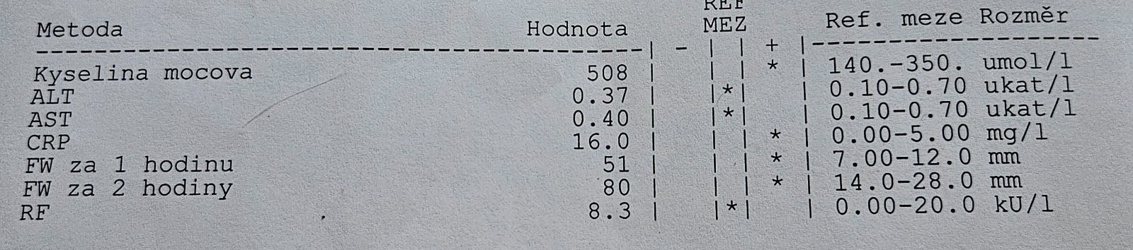 @blecha94 hlavne teda co je tohle za "random" pozadavky? Transky, mocovka, CRP, sedimentace a revmatoidni faktor? Ja jako momentalne jako nejsem schopna ani urcit, co vlastne chtel overit. Na ledviny nechtel nic, kompletni jaterni taky ne, ani bilkovina ani CK, ani nic, co tim hledal? Jakoze nejsem lekar, ale nedava mi to smysl.