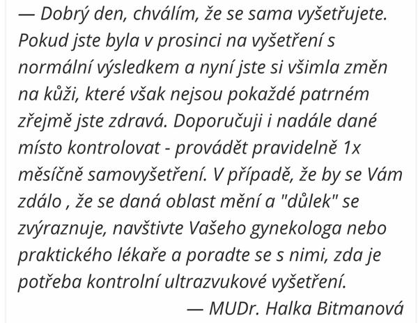 Ahoj holky, prsa si nechávám kazdorocne zkontrolovat z vlastni iniciativy…nemame zadnou rodinou zatez, a nevim jestli tohle nebylo uz na posledni kontrole v listopadu, jen me zajima…leteli by jste s timhle na mamo? Nic nehmatam jiny zmeny nepozorujuji…jen takovej drobnej dulek, je to i uroven podprdy ale zase ted jsem ji par dni nenosila jestli to zmizne a nic….manzel i mamka moje mi rekli, ze jsem blazen, ze to nic neni…jako je mozny ze se moc sleduju a tohle je jen proste uz ovadlejsi kuze😂🙈bude mi 32, jedno dite ale nekojila sem….