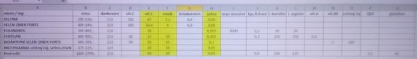 Ahoj holky, jelikoz uz skoro 3/4 roku zobu kys. Listovou, delam ovu testy, merim BT, vse vyoada dle dr ok a presto stale nic, hledala jsem neco i pro chlapa... Porovnala jsem slozeni ruznych vitaminovych slozeni... Hodne tu doporucujete selzink, o neco vice vitaminu ma vsak v sove selen-zinek forte, doporucovany spise pro zeny na vlasy, nehty... Hodim vam sem ten prehled... Snad nekomu pomuze s vyberem... Pokud bych se mela ridit, ze pro chlapa hlavne selen a zinek, tak staci obyc vitaminy a fertilan, folandrol ci profertil mi prijdou jako predrazene tahace penez...to uz necham k posouzeni vas vsech... Chlap dnes nasadi to forte selen zinek, tak snad pomuzou