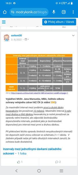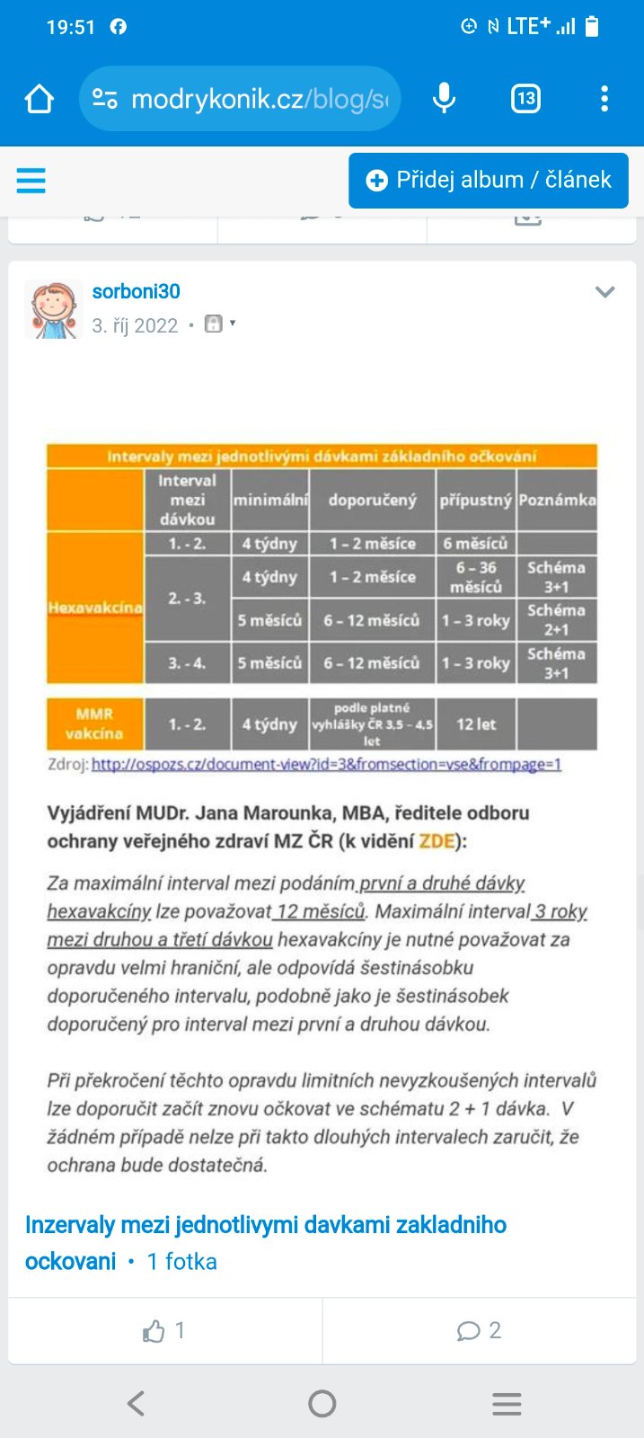 První dávku dostala když měla bio 5 měsícu, korigo 2 mesice. Druhou dávku dostala o dva měsíce později. No a kvůli nežádoucím účinkům jsem to posunula..i když doktorka řvala (tehdy jsem ji řekla, že mě nezajímá, že ji nesedime v tabulkách, ale malá půjde na očkování až já řeknu, ne ona) Třetí očkování dostala přesně o rok později.