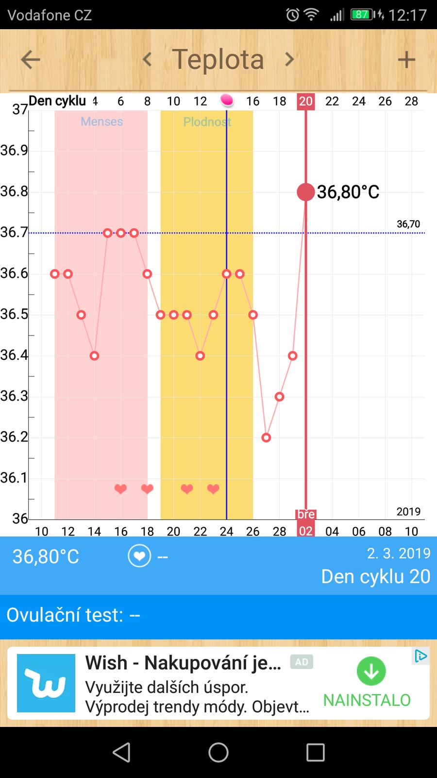@psychedelos78 ještě jsem zapomněla v te aplikaci si zapisuj čas v kterým si měřila teplotu ale musí být každý den stejný čas jinak ti tu ovulaci označí špatně