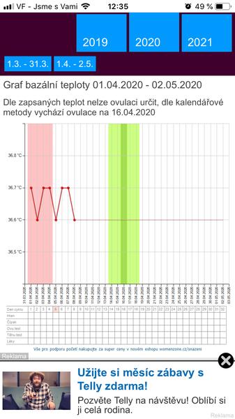 @hajglish Moc to neřeš. Prostě se pokračuje dál. Za mě úplně krásná křivka. Neřeš tam ty zelené sloupce zobrazující plodné období. Plodné období je tehdy, je-li před ovulací hlen. Hotovo. Sleduj se, to jo, ale neřeš tolik každou jednotlivou teplotu. Prostě teď jen klesá před ovulací teplota, víc nevíme 😉🙏