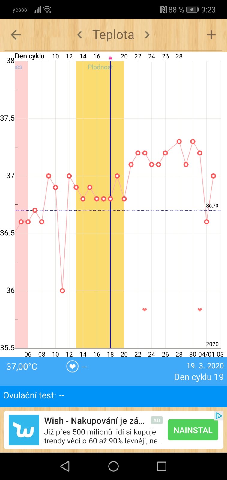 @lenickamimi , nevím, jak máš normálně dlouhou tu luteální fázi, ale dle grafu a běžné délky, bys měla mít na menstruaci ještě čas, a vlastně i na "potvrzení" těhotenství dle BT. V tom prvním grafu máš totiž označenou ovulaci dřív, já tu aplikaci používám taky a vím, že tam hází předpokládanou dobu ovulace podle průměru a upravuje to až zpětně podle příchodu menstruace. Jinak třeba já v minulém těhotenství dělala poprvé test v den vynechané menstruace, přesně 14 dní po ovulaci a vylezl mi duch, kerý skoro nebyl ani vidět, natož aby šel vyfotit, přesto jsem si byla jistá, další test jsem si pak dělala za 4 dny a už byla čárka silná asi jako kontrolní, tak uvidíš, ještě pár dnů a budeš vědět na čem jsi 😉