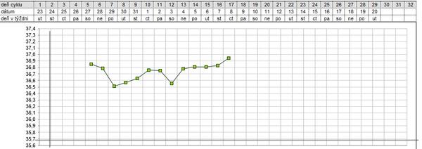 Tak já bych řekla 17 DC. Ale vzestup je hodně malý a vypadá to na kratší luteální fázi.