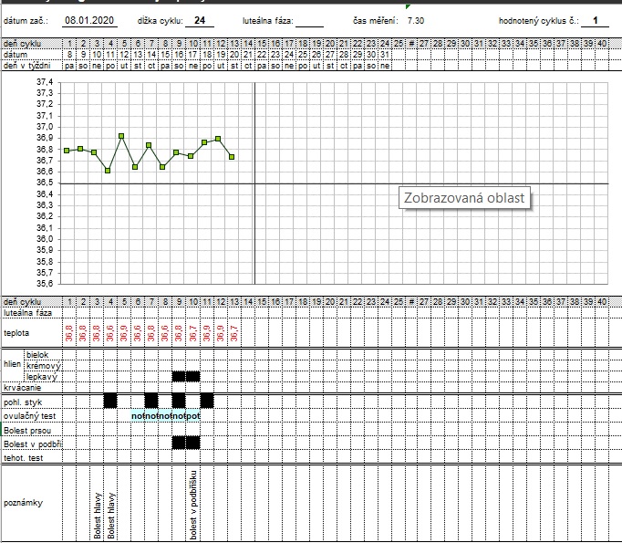 Nene, zadne okolnosti, vse stejne jako predchozi den. A co toho 15.1. ? Tam je teplota nejnize a pak uz je jen vyssi.... menstruaci jsem mela od 5.1. do 8.1. (je pravidelna cyklus 24-27dni), to by bylo ale na ovulaci asi brzy, ze?