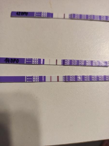 Ahoj holky, potřebuji dodat trochu naděje nebo podpory 😔 mám za sebou 3 biochemická těhotenství během 3 měsíců za sebou. Celkem se snažíme půl roku a už jsem z toho unavená 😫 mám vždy pozitivní test a stejně přijde ms, řešila jsem s mým doktorem a ten mi řekl, že je to normální. Vyprosila jsem si u něj tedy alespoň utrogestan pro lepší pocit. Poznám na sobě těhotenství i bez testu a opět se mi to potvrdilo. 9dpo jsem si udělala mamatest a krásná čárka, nemusela se vůbec hledat, objevila se do 2 minut. Měla jsem z její síly velikou radost, protože takovouto čárku jsem měla vždy 13, 14 dpo, takže jsem si dělala naděje, že teď už to vyjde. Jenže. Dnes 11 dpo jsem dělala další test, čárka naběhla do půl minuty, ale je jen o malinko silnější než 9dpo. Přidám Vám foto. Co myslíte, sílí nebo ne? Je mi jasné, že teď tam jea zítra být nemusí, ale chci vědět na čem jsem. Děkuji 😊