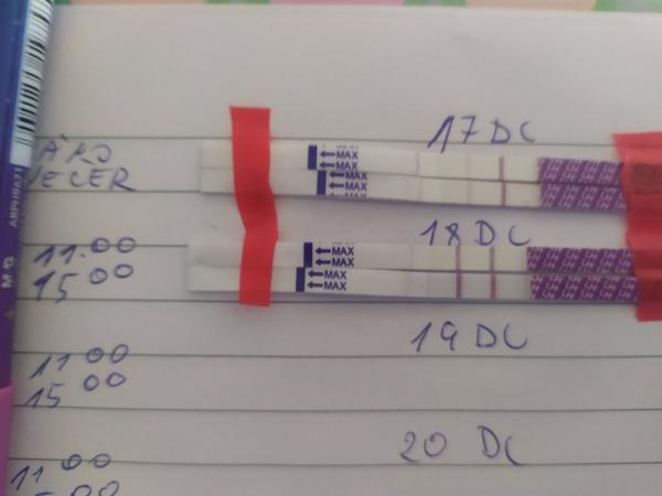Ovulaci jsem měla 26-27.2 bolí mě břicho a mám výtok tak jsem udělala ovu test vcera viditelný duch dnes už hodně viditelná čárka. Čas dělání je stejný . Nechápu