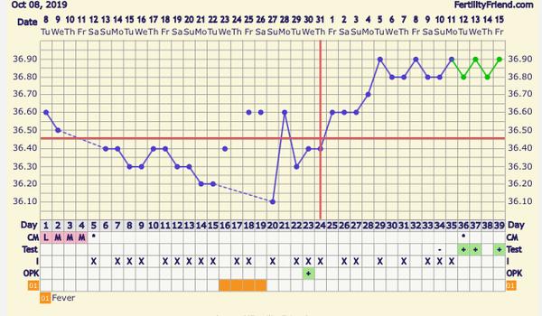 Dnes bych viděla tu vysokou teplotu kvůli tomu buzení v noci. Poté tam dost hodnot chybí, ovulace mohla být později.