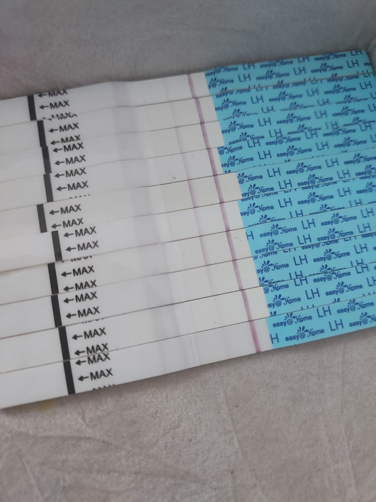 @adula000 Testovala jsem v době sílící čárky 2x denně, tak myslím, že jsem to o tolik neminula. Asi má každý tu hladinu LH jinou. Takhle vypadal můj měsíc testování. Jsou to testy dr. Max, vyhovovalo mi, že má hodně barviva.