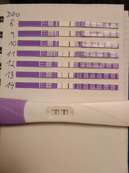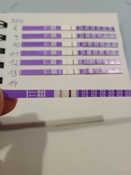 jinak já magor včera večer cestou z práce ještě koupila jinou značku testů než Mama, koupila jsem jediný co měly v obchodě a to Pepino, už mi třikrát ukázal dvě čárky a ani jednou jsem nebyla těhotná. Tak jsem si ho večer udělala, udělal světlou čárečku, zviditelnila se víc až limitu. Celý večer a noc jsem byla v úzkostech, že se něco pokazilo 🙈 ráno jsem si udělala poslední svůj Mama a dodělala jsem ten druhý Pepino, tak Mama vidíte na fotce a Pepino udělal ještě světlejší čárku než večer, úplně shit test 🤬