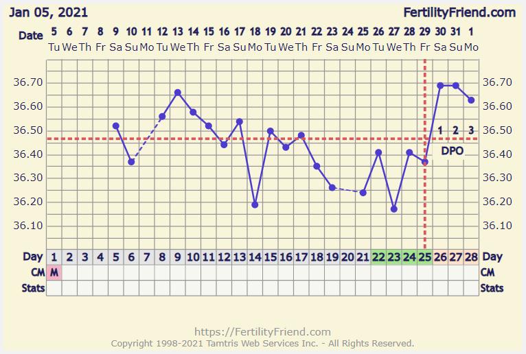 před čtyřmi měsíci jsem vysadila antikoncepci. V tu dobu jsem si začala měřit BT a grafy jsem měla ukázkové. Ovulace dle grafu vždy proběhla mezi 14 - 16 DC. Tento měsíc jsme si s přítelem řekli, že se tedy začneme snažit a snažili jsme se každý druhý den. Jenže jak se postupně vyvíjel graf tak jsem z toho zmatená. Teplota se pořád tak nějak držela na stejné úrovní a pak klesla a následně začala stoupat. Myslíte že je doopravdy možné že ovulace tentokrát proběhla až 26 DC? TT jsem ještě nedělala, čekám jestli dorazí MS. Díky za reakce. Přikládám graf.