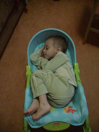 mili, ja uspavam,porad to nejde. chvilku lezi, pak se hejba, vytrhne dudlika a uz je vzhuru.