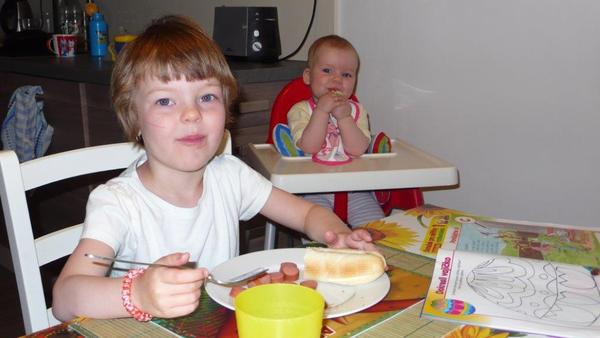 Ninka uz konecne papa ako sa patri🙂 uz uplne zabudla na dudel... Aj zahaja na prsniku,takze som rada. Je usmievava a spokojna🙂 len vonku ju to moc nebavi...Chvalabohu sa da moj kocik dat aj do takeho polosedu a tak vidi von,to ju na chvilu zabavi.