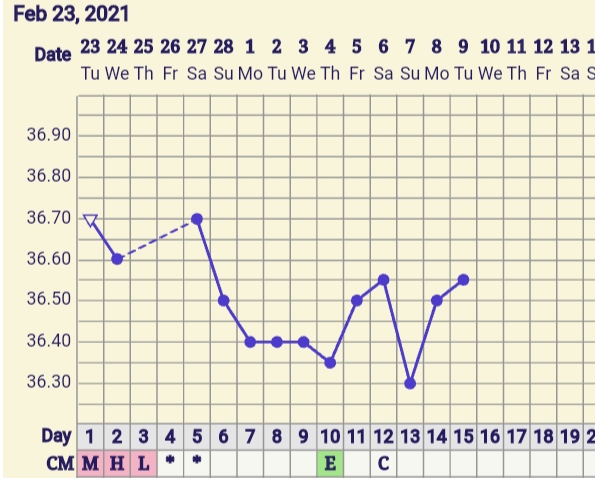 @levandulka_fialova jak vypadá tvůj graf? Já dnes zkusila první test a nic, ale zatím je brzy. Mívám ho pozitivní až tak 13,14dc, dnes teprve 10. Včera jsme si udělali hezký večer 😂, sice konec šestinedělí budu mít až v pondělí, ale už mám po ms, tak to snad nevadí 🙂