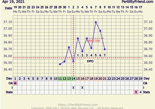 @zvladarova bohužel si neměřila od začátku, tak se i ta ovulace špatně odhaduje. Ale já tam žádný velký pokles nevidím. Pokud ovulace byla ten 14dc, tak i dnes je ta bt v poovulačních hodnotách