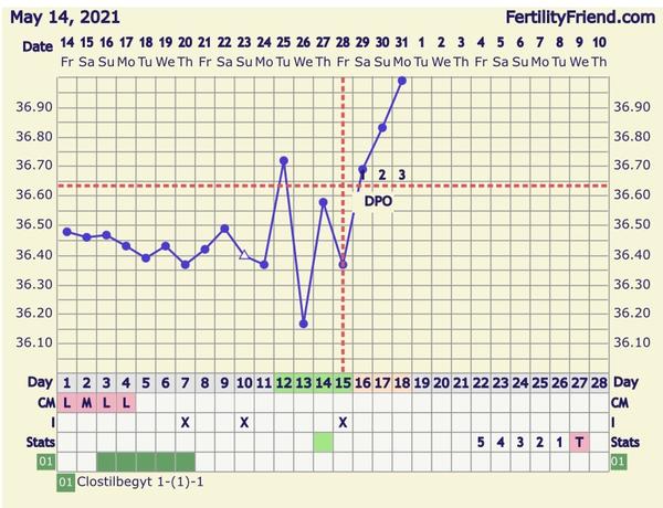 @tehulkamaminka Měření po noční je neplatné, musí se jít spát a až po probuzení změřit. Měření platí jen po spánku delším min. 4 hodiny. Takže pokud to tak je, graf je zkreslený. Podle vysokých teplot bych to viděla na ovulaci ještě dřív.