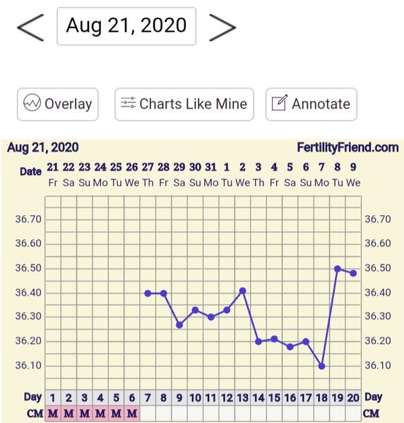 Když se bude zítra držet jako dnes nebo výš tak už ti to zítra ovu vyznaci. I já mám tento cyklus nižší teploty. Je to určitě tím že je v noci chladněji.