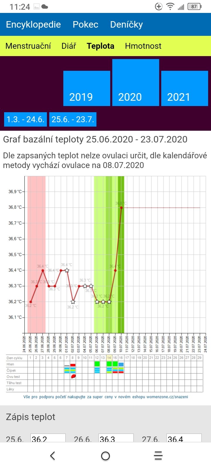 @lenickamimi44 věřila bych womenzone nebo fertilityfriend. Ovulace je den posledních nízkých teplot kterých je pět za sebou před třemi vyššími 😉