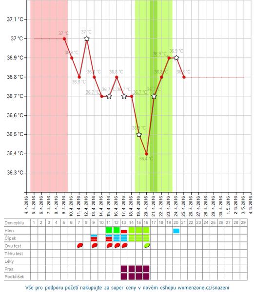 @nina8888 ahojky tak dnes pokles na 36,7 tak si myslím ze nás čeká další měsíc snažení 🙂)) ale bude květen lásky čas 🙂))