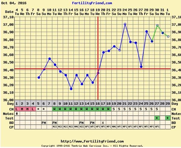 Ahoj holky jdu se svým grafem o radu!!! Mám cca půl roku vysazenou antikoncepci, nesli jsme naostro az do léta, v září asi proběhlo nějaké tehu,ale odešlo s ms a tak po kontrole na gynekologii dali gynprodyl (utrogestan) a mela jsem si dělat ovu testy,k nicemu, čárka byla ještě i dva dny před ms tím že došla hbed 27DC,tak jsem začala měřit teplotu po ms a vypadá to nějak takto,teď jsem 16DC a ovu test byl pozitivní nejvíce cca kolem 9DC ale teď tak čárka neslabne,ale moc k tomu Nepriblizim po minulém cyklu a vim že teď po pár dnech měření nejdou dělat závěry, ale i tak by me zajímal názor vašeho odborného "oka" děkuji a přeji hezky večer. Dodatek: prvního syna mám po třetímIVF se ztrátou jeho dvojcete s jiným partnerem 🙂